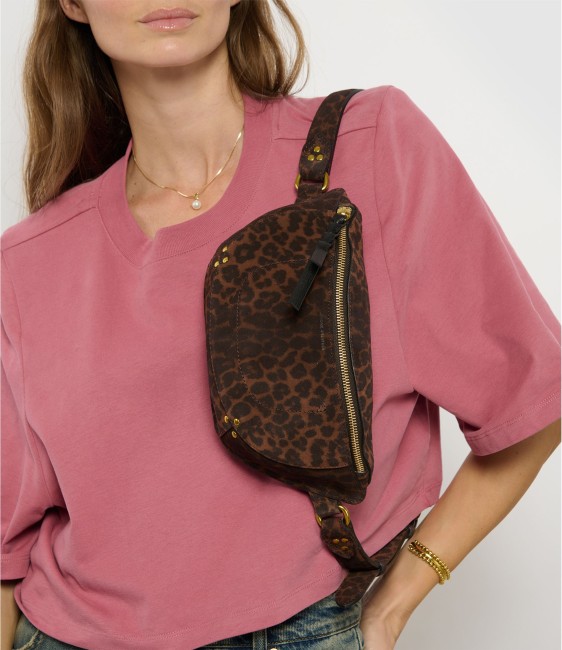 Sac banane en cuir, avec poche zippée au dos. Ceinture réglable.
