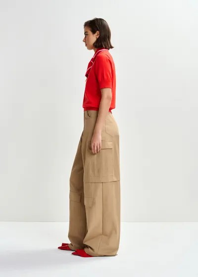 Polo raffiné en maille fine, confectionné à base de polyester recyclé dans une coupe décontractée. Sa silhouette est encadrée de bords côtelés qui ajoutent une subtile dose de structure. Le col contrasté noué comme un foulard apporte une touche remarquable au design classique.