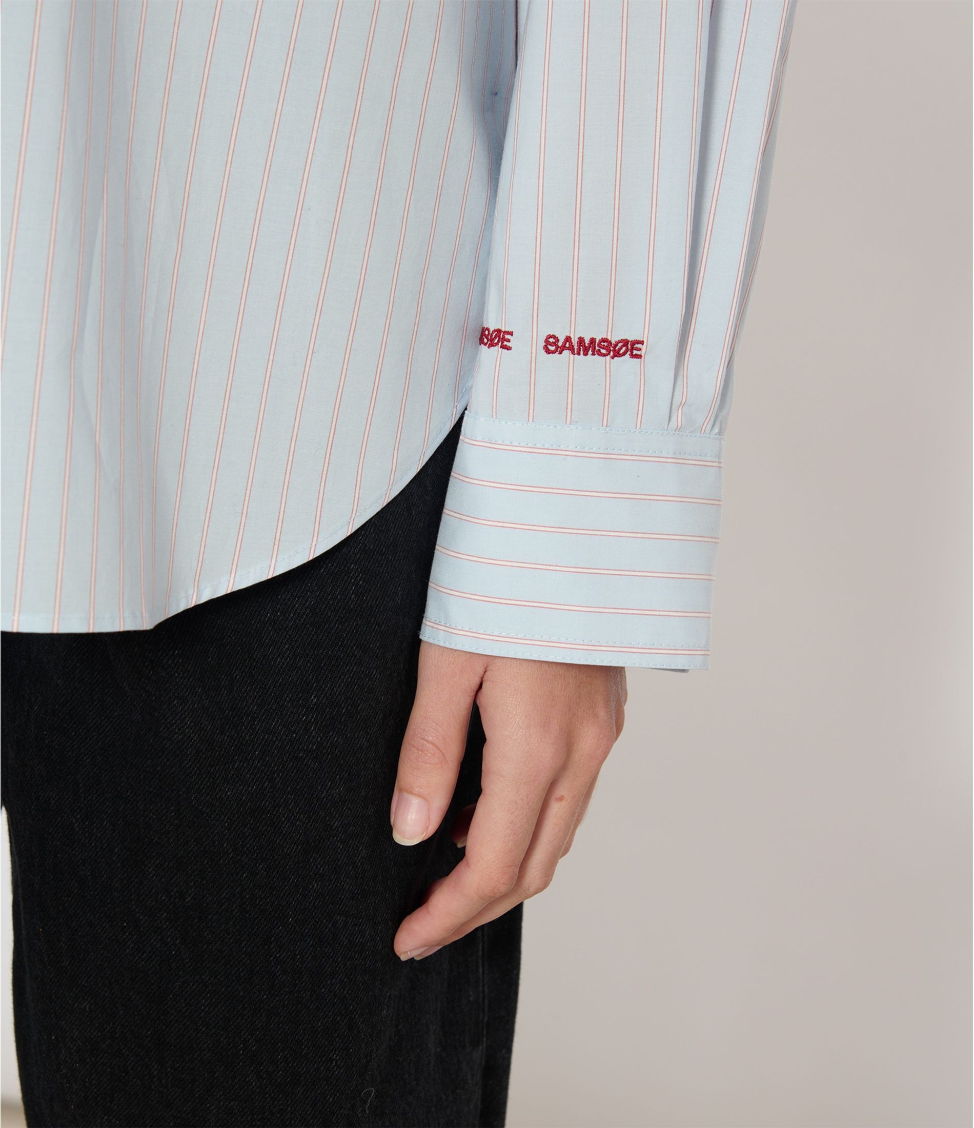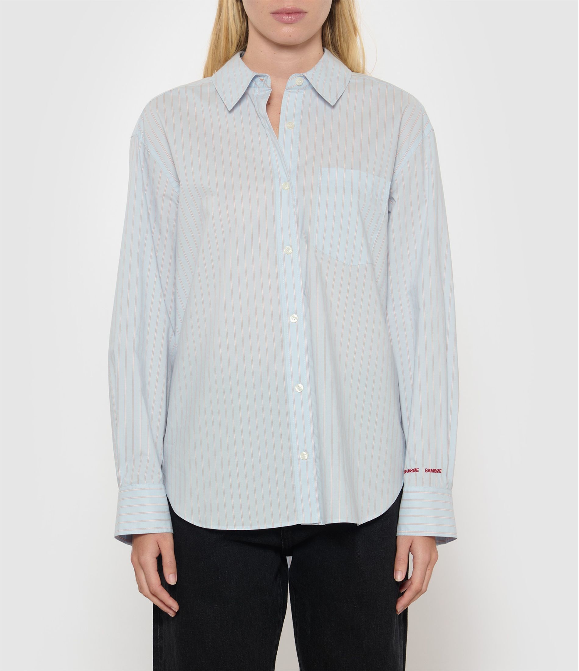 Chemise à rayures, col classique à manches longues avec une coupe ample et des épaules basses.
