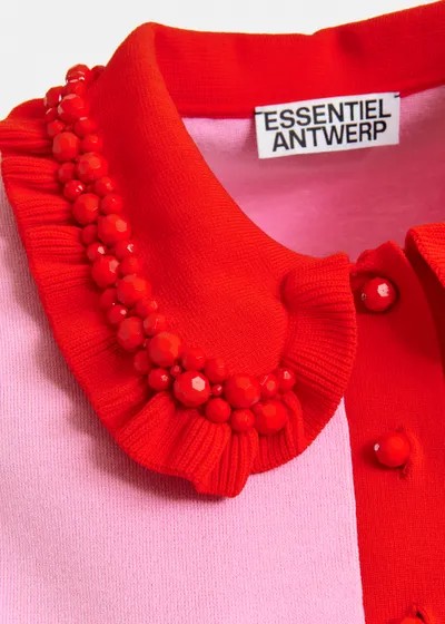 Polo dont la coupe décontractée se resserre au niveau des hanches pour s'associer à merveille à des tailles hautes. Le col rehaussé de volants et de perles lui donne un air élégant, tandis que les boutons en nacre lui apportent une touche d'éclat.