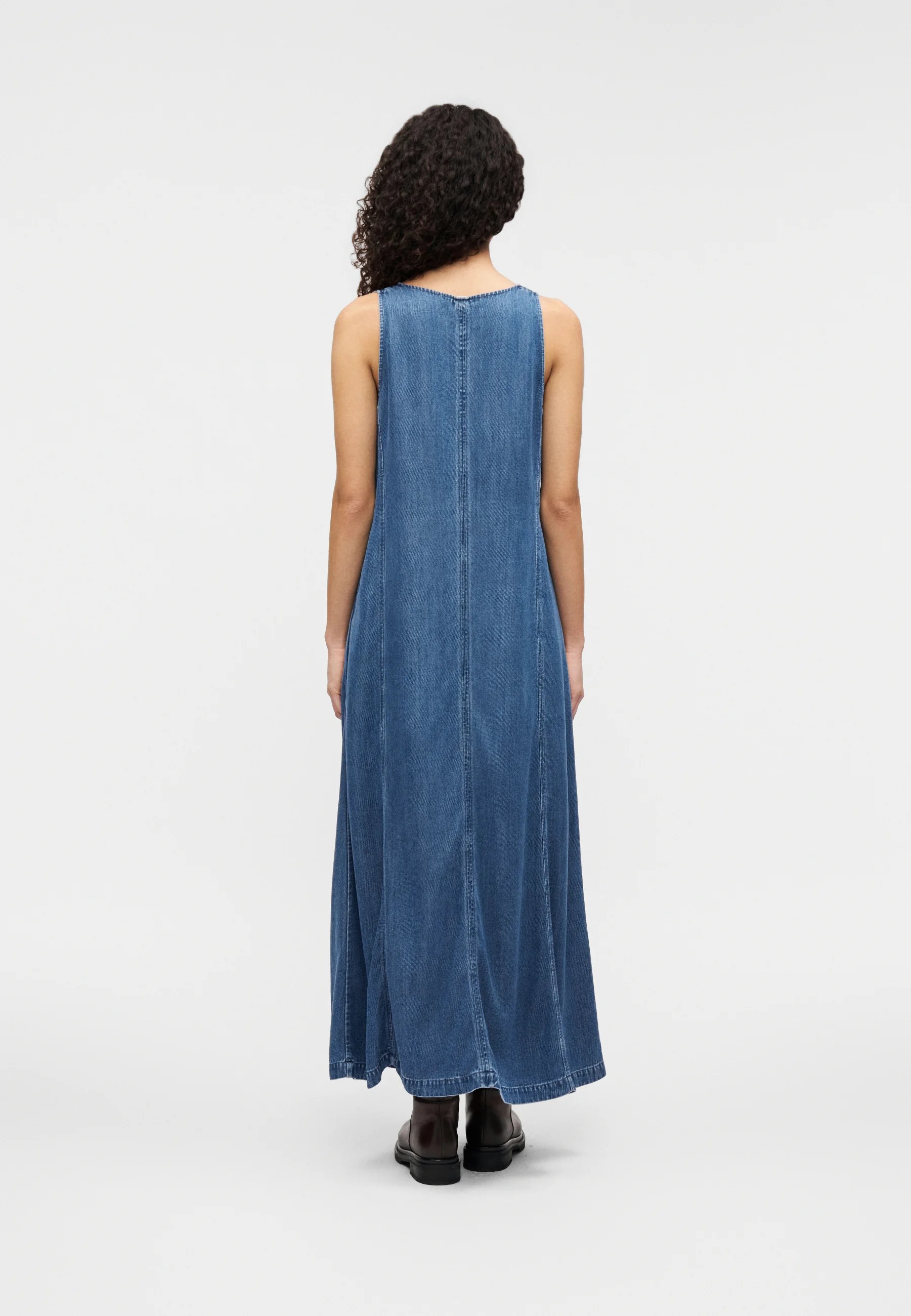 Robe longue en denim sans manches, coupe ample et jupe évasée. Encolure en V, dos droit. Poches prises dans les coutures latérales. Matière principale fabriquée à partir de 100 % TENCEL™ Lyocell.