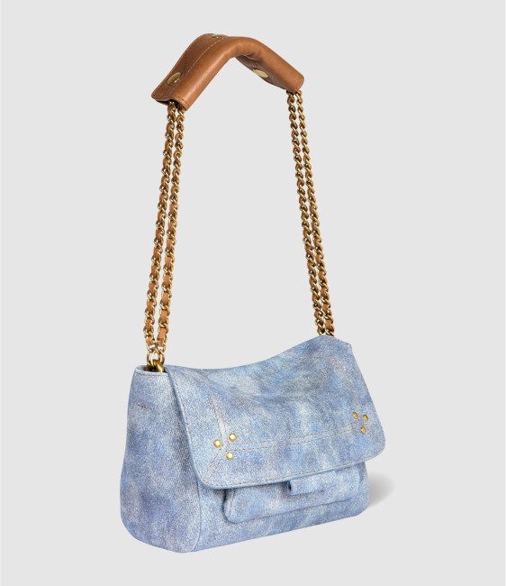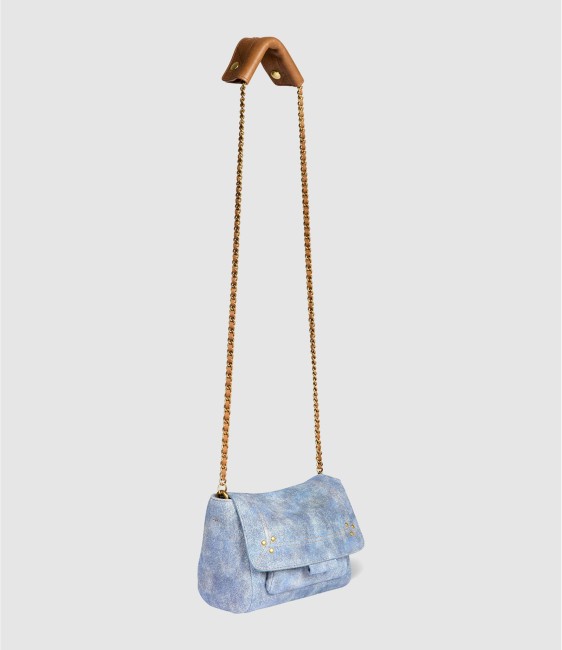 Bandoulière tressée en cuir et chaîne, amovible par mousquetons, et réglable en deux longueurs.