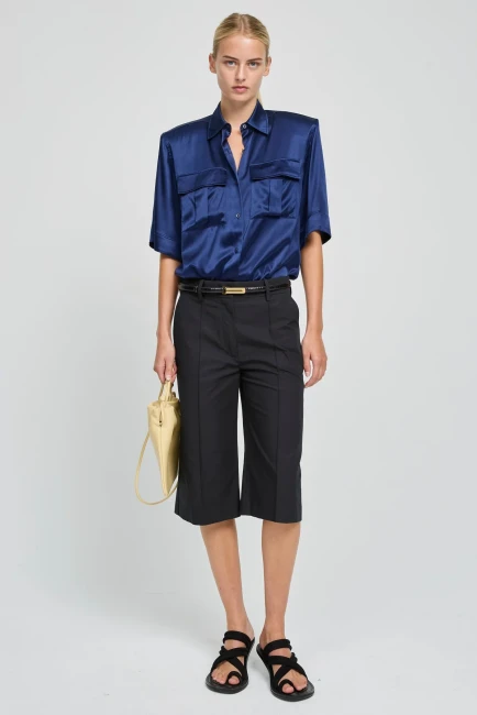 Poches fendues sur les côtés. Tissu 100 % lin.