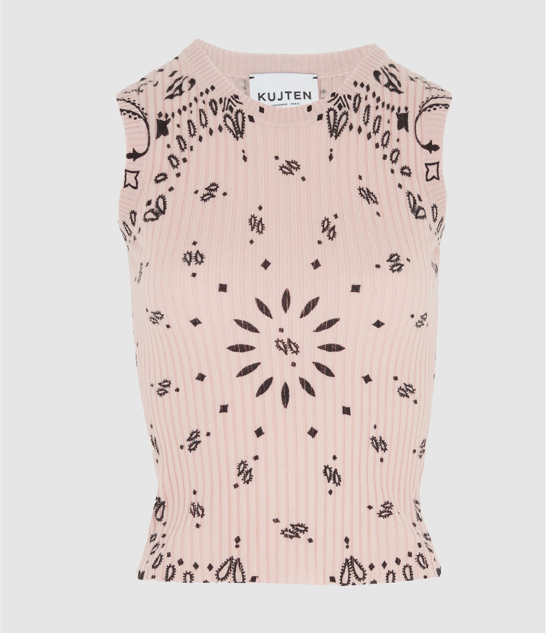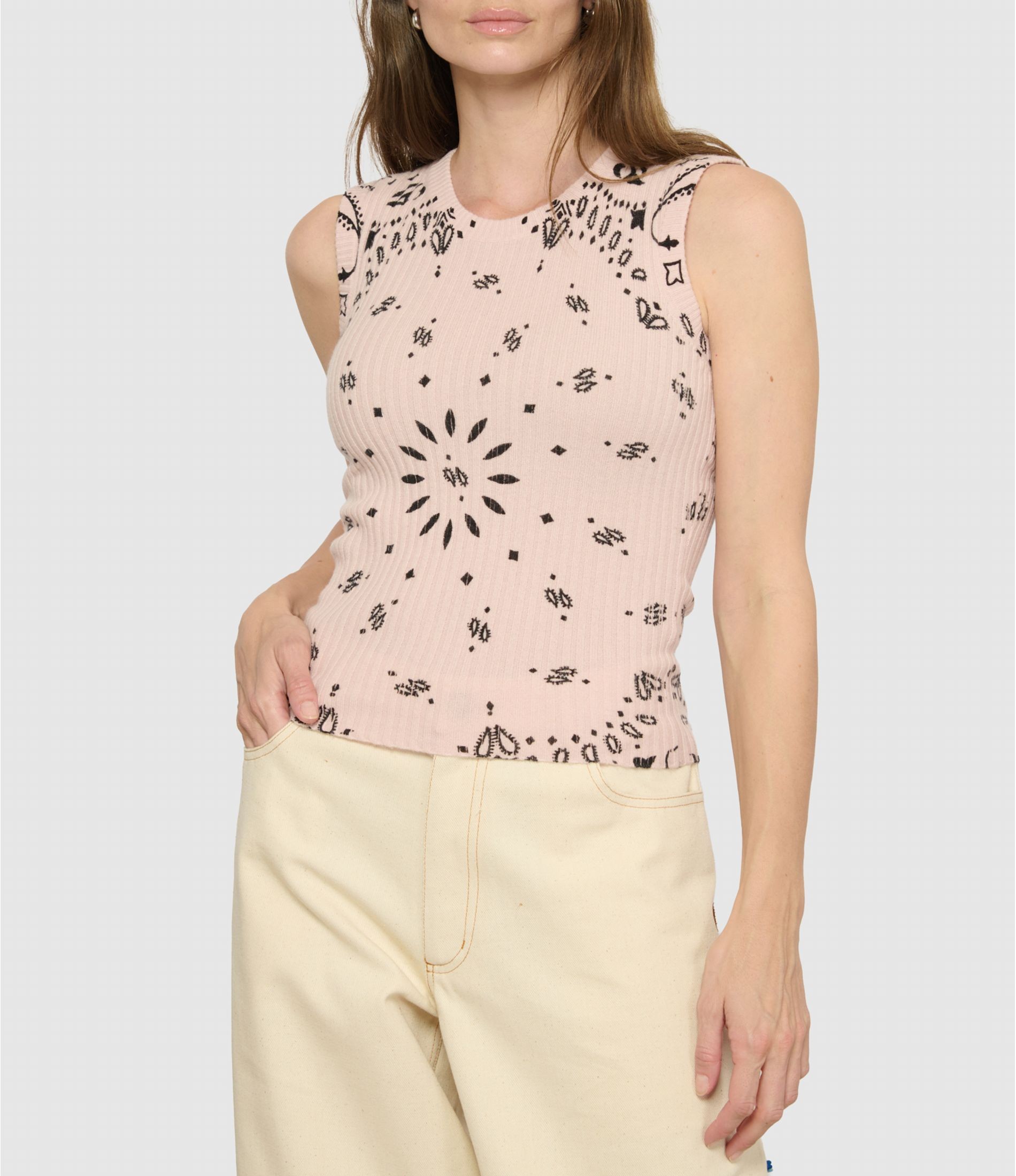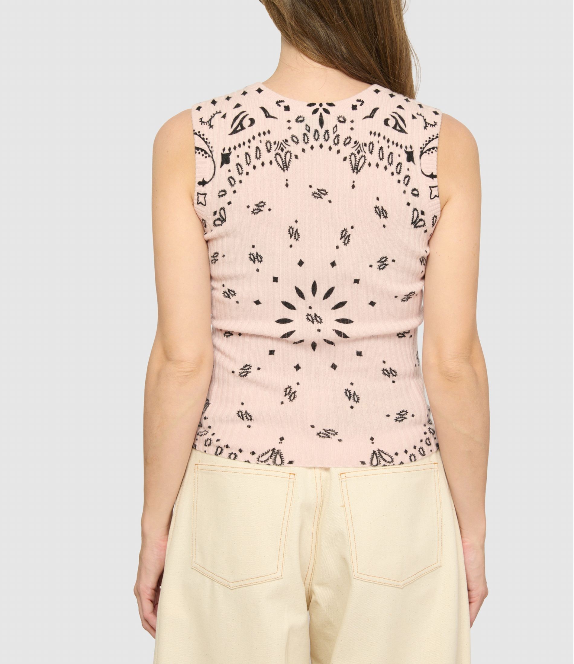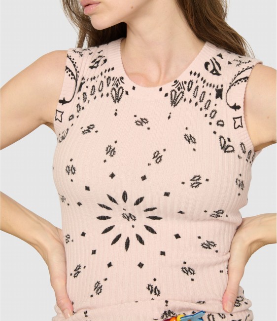 Débardeur en cachemire rose imprimé bandana.