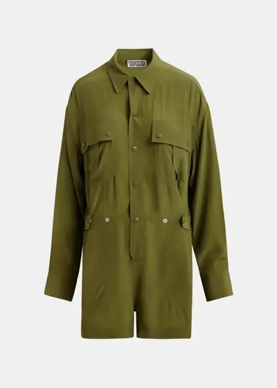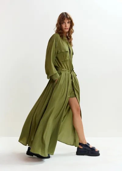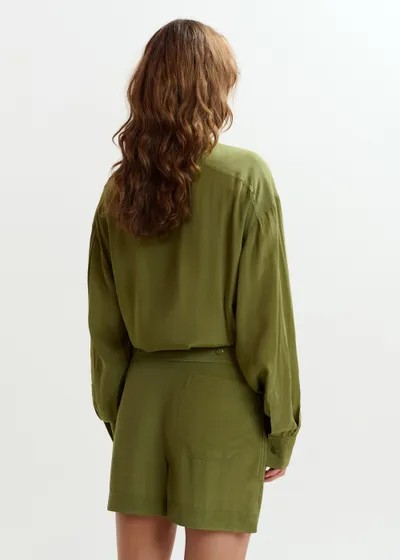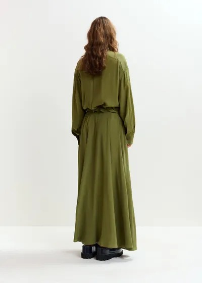 Combishort oversize polyvalent, intelligemment conçu pour aussi faire office de robe longue. Doté d'un haut style chemisier avec poches poitrine, d'une fermeture à boutons-pression et d'un détail flatteur à la taille, ce combishort s'accompagne d'une longue jupe fluide créant un look superposé élégant tout en assurant une grande liberté de mouvement. Des poches fendues pratiques complètent le look.