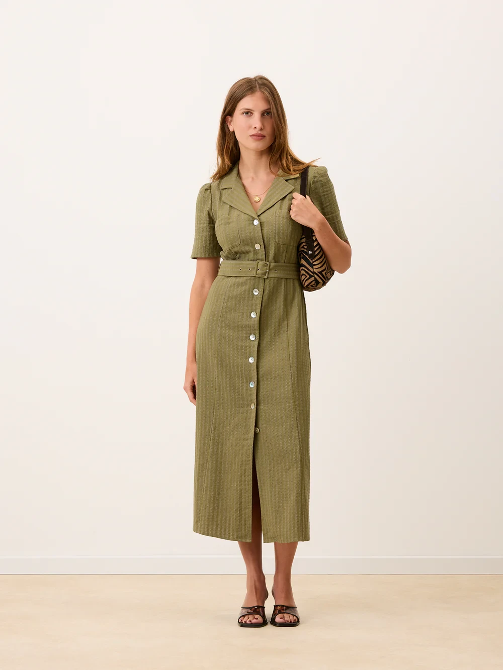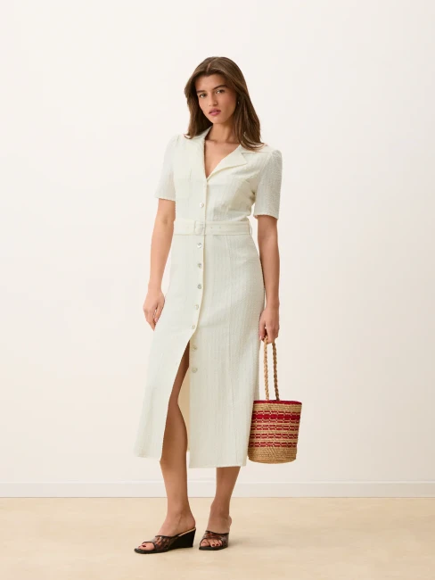 Robe midi ceinturée en seersucker