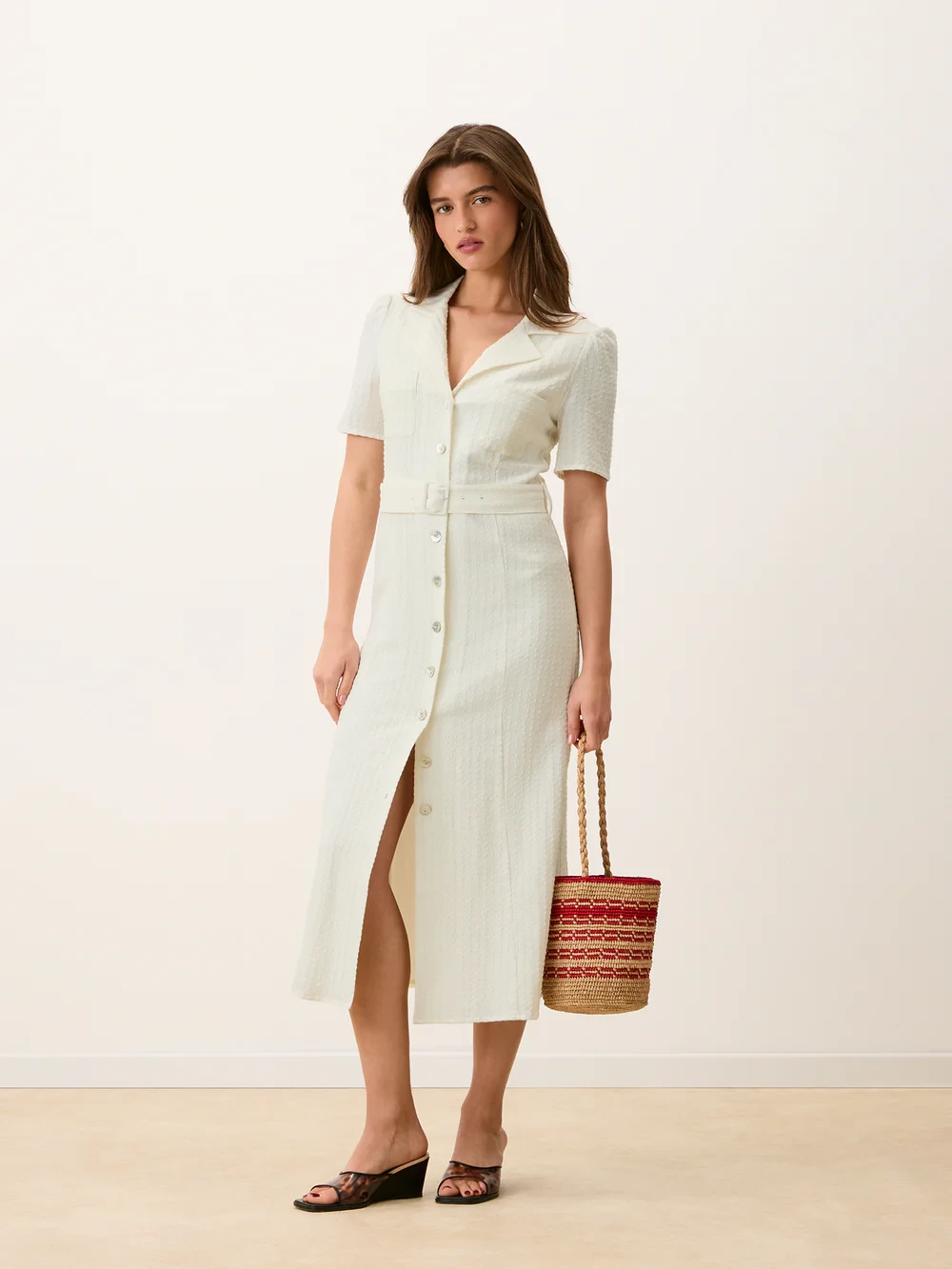 - Robe midi ceinturée