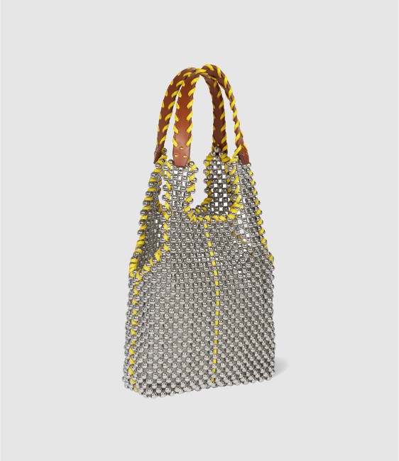 Sac en bijou entièrement confectionné en perles argentées.