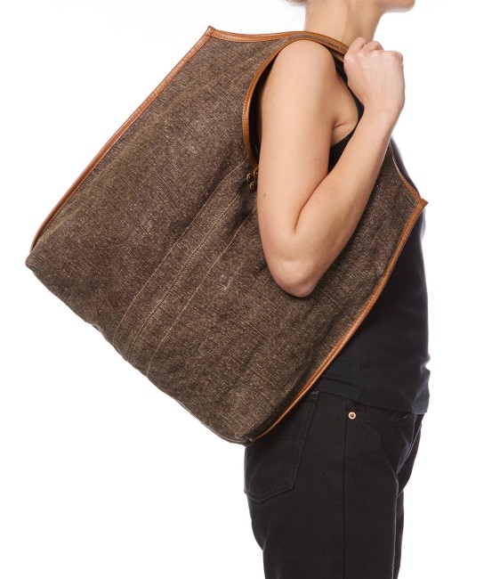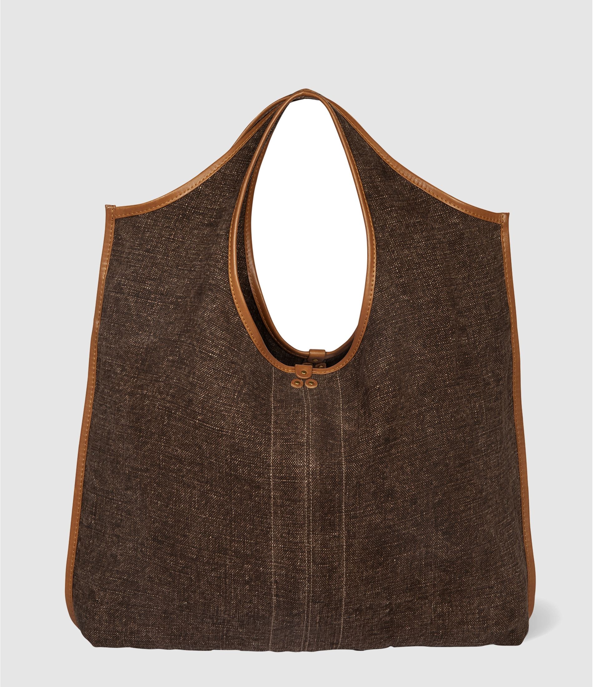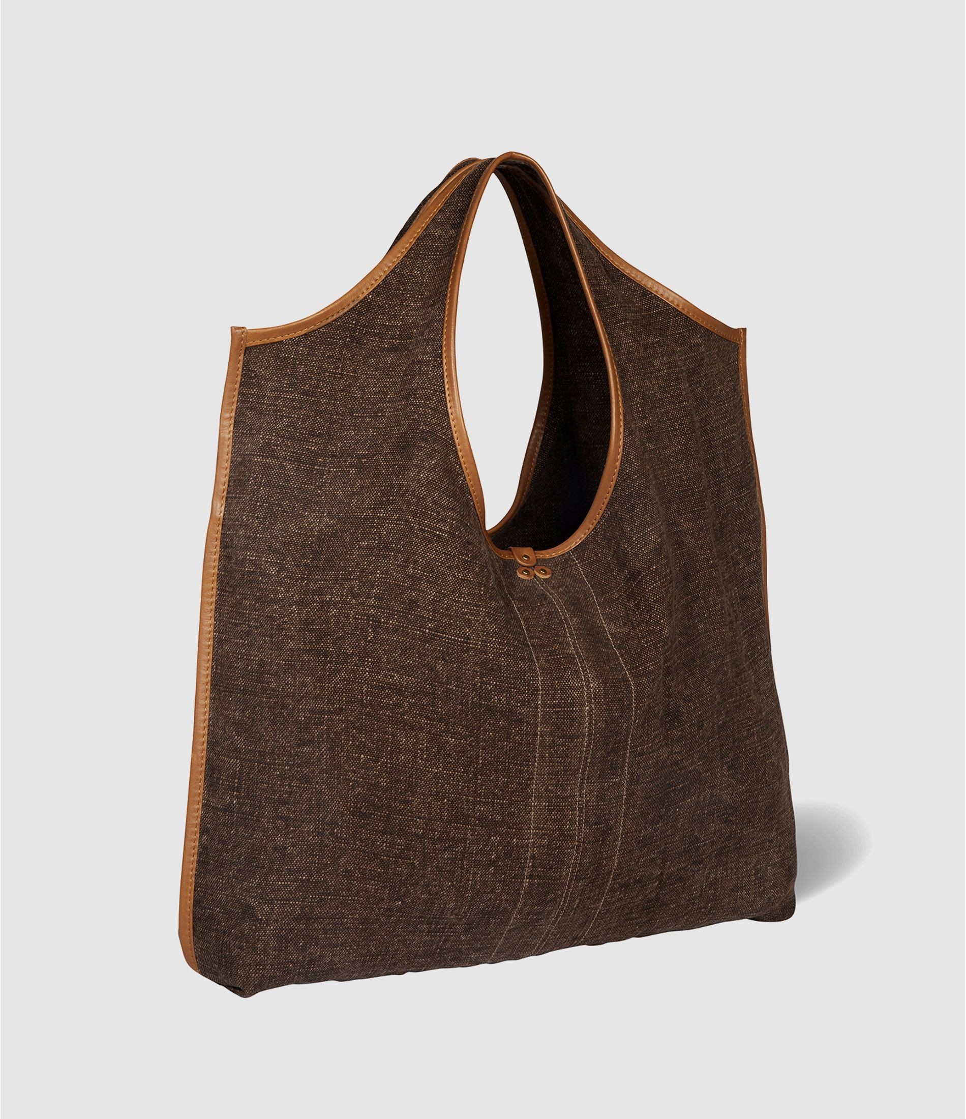 Tote bag souple effet lin, rehaussé de détails en cuir marron.