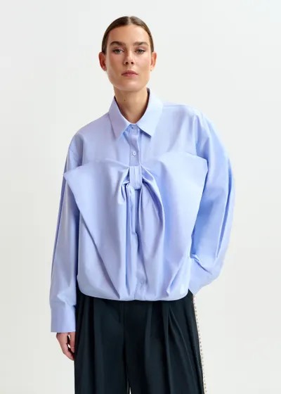 CHEMISE IBOW EN COTON MELANGE A NOEUD BLEUE CLAIRE - ESSENTIEL ANTWERP